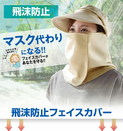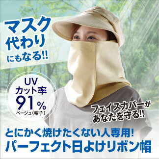パーフェクト日よけリボン帽 フェイスカバー 日焼け防止 日差しカット UVカット 紫外線対策 コンパクト 首元 日焼け 防止 飛沫防止 マスク
